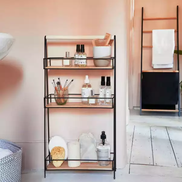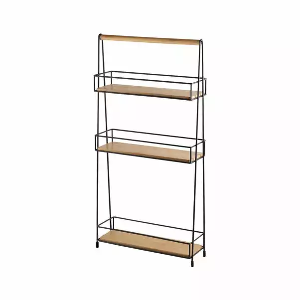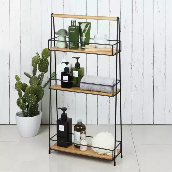 Perfect for storing all your bathroom accessories, this 3 tiered caddy boasts a fashionable black wire design that would look good in any bathroom. made from durable bamboo and iron this caddy is strong and is also perfect for smaller bathrooms due to its space-saving slim design.