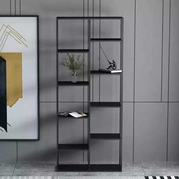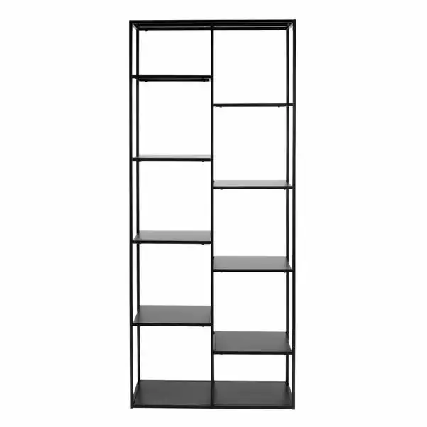 Tall and slim, this stylish shelving unit with a modern black colourway is the perfect way to store all of your bits and bobs, whether in the home office, bedroom or living areas. The powder coated finish makes this both practical and attractive.