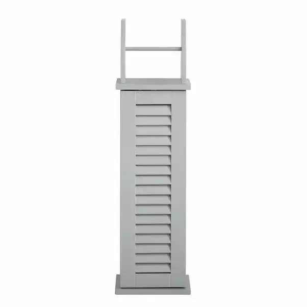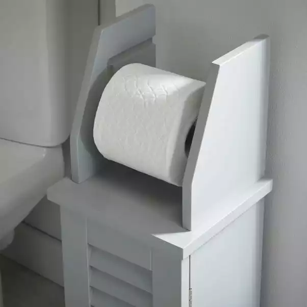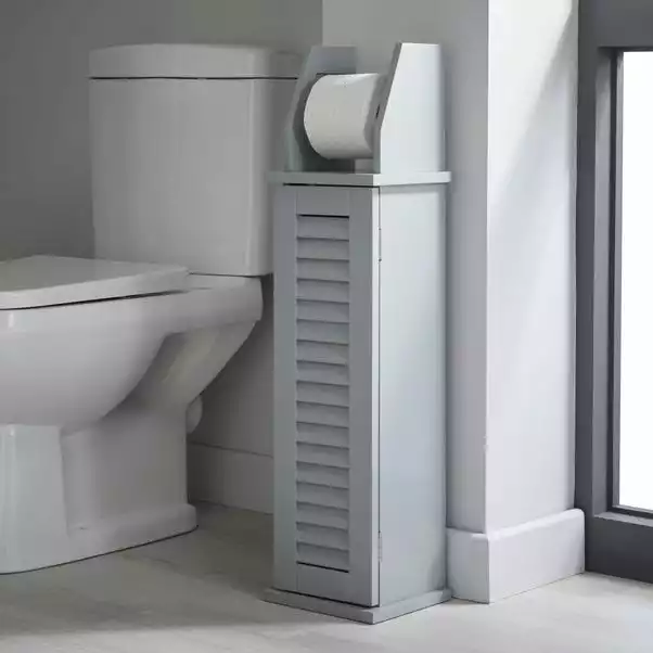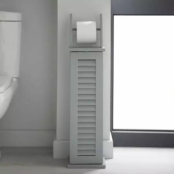 Designed with a contemporary grey finish, this toilet roll storage unit from the Tuscany bathroom collection has been designed with a toilet roll holder on the top and features addition storage space underneath with a hinged slatted door design, perfect for keeping your spare toilet rolls in an easy to access place.