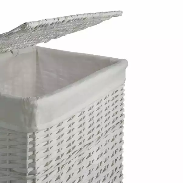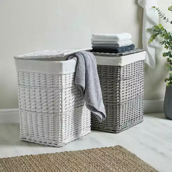 Made from hard-wearing woven willow, this basket features a hinged lid for easy access to it’s contents. Providing a neat and tidy storage solution and featuring a removable inner liner for easy cleaning. This laundry basket is available in a range of sizes and is also available in a grey colourway.