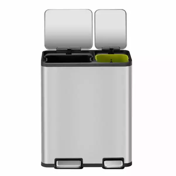 This EKO Ecocasa is an extra large capacity recycling bin made from high quality brushed stainless steel that will help solve your waste problems. Keep your kitchen looking smart and clean thanks to the fingerprint resistant coating. Two colour coded removable inner buckets for easily help you separate your waste. A silent, soft close lid has a stay open function/frame which is helpful for your longer cooking tasks. Antibacterial coating, deodoriser compartment and a silicone seal helps to contain all matter of odours. The fitted bin bag fixer holds any size bag in place. So no more shopping around for the ‘perfect’ bin liners. This bin also comes with a 3-year manufacturer warranty.