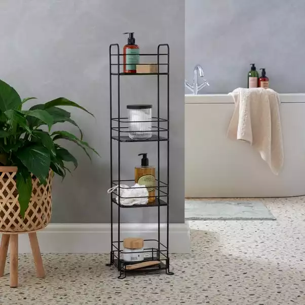 With a simple black wire design, this freestanding storage caddy features four, spacious shelves giving you an ideal space saving storage solution for your bathroom.