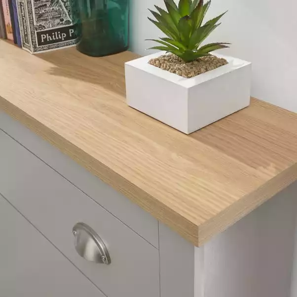 The perfect mix of practicality and style, this Lancaster Grey Shoe Drop is complete with two shoe rack spaces and is perfect for neatly storing away footwear. Available in either a grey or white colourway, and featuring a contrasting oak effect top, this product is as stylish as it is practical.