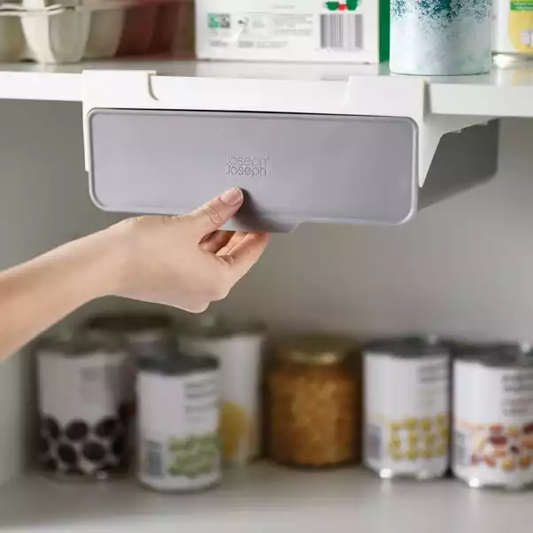 With cupboard space often at a premium, this innovative design makes use of unused space beneath the shelf. It features a handy drawer that’s perfect for storing awkward items such as loose stock cubes, small packets and food paste tubes. Easy to install using strong 3M tape, the unit fits neatly onto your existing shelf. Suitable for kitchen units over 23.5 cm (9 inches) wide.