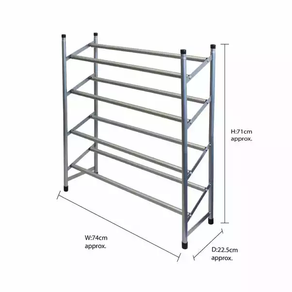 Organise the footwear in your home with JVL’s four tier shoe rack, designed with a sleek and stylish look. This smart storage unit can hold up to 16 pairs of shoes, making it perfect for keeping your footwear tidy in any room of the house. The powder-coated grey metal frame is both durable and easy to maintain, and the protective rubber feet will ensure that your floors remain scratch-free.
