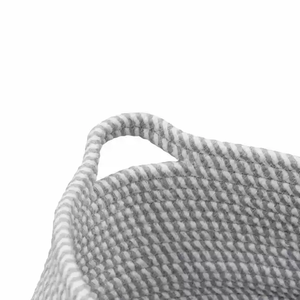 Introducing the Edison collection from JVL, this range offers practical and stylish storage solutions for your home. Perfect for keeping your home tidy and clutter-free, this versatile storage basket is made from thick cotton rope, are sturdy and easy to move around the house, yet gentle on little hands. Not just for storage, the baskets make a statement piece that can be placed in a corner of the bedroom, family room, playroom or even tucked into an open cube unit for a unique look. The soft grey and white tones of the rope complement most contemporary interior décor styles and can be used in any room of the home.
