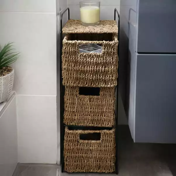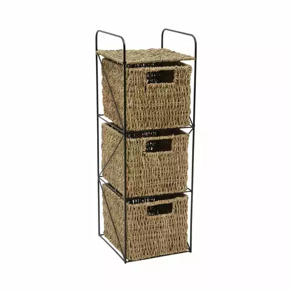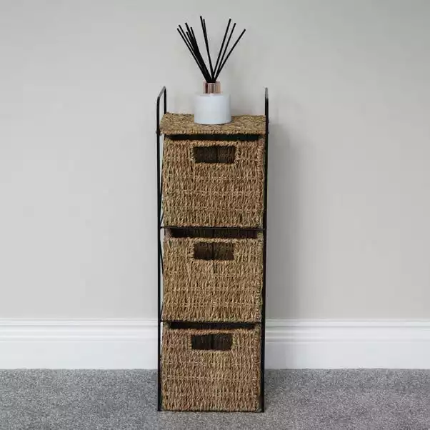 Allow JVL’s Seagrass range to fulfil your home storage needs for a stylish addition to your home, but also an eco-friendly choice as seagrass is a renewable source and a fast-growing plant that grows in the sea. This versatile and practical storage tower is perfect for organising items anywhere in the home or office with 3 separate drawer compartments to keep items contained. The natural, textured look of seagrass and wooden handles adds a touch of rustic charm to any room, while the metal frame adds a sturdy and modern touch.
