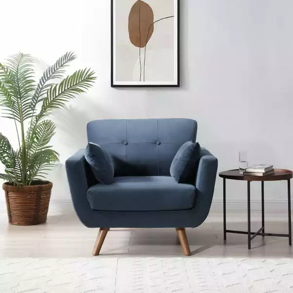 Part of the Bobby range, this chair is upholstered in a soft velvet fabric and is designed with a Scandi look. Boasting button back detailing for a sophisticated edge and two waist cushions, this chair is perfect for adding a sophisticated edge to your décor.
