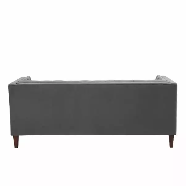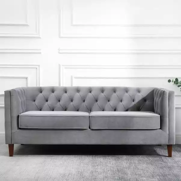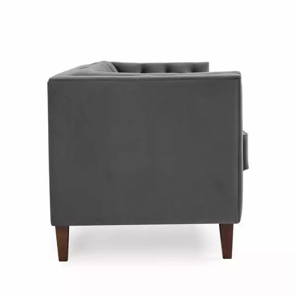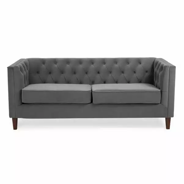Offering a modern take on the classic chesterfield design, the Leah sofa is upholstered in a soft, blush velvet fabric, complete with a stunning button back detail. Boasting deep padded foam-filled cushions and dark wood legs, this luxurious sofa would make a classy addition to any living space.
