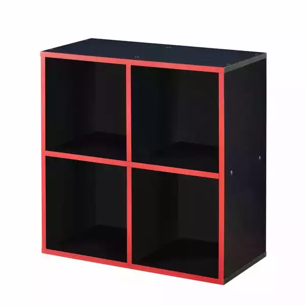 This modern, two toned, free standing shelving unit features four cubed spacious compartments for all your storage needs. Perfect for a gaming set up and compatible with the Virtuoso Gaming desks, console storage units, and gaming accessories. This storage unit is also available in a variety of configurations to suit your space and needs.