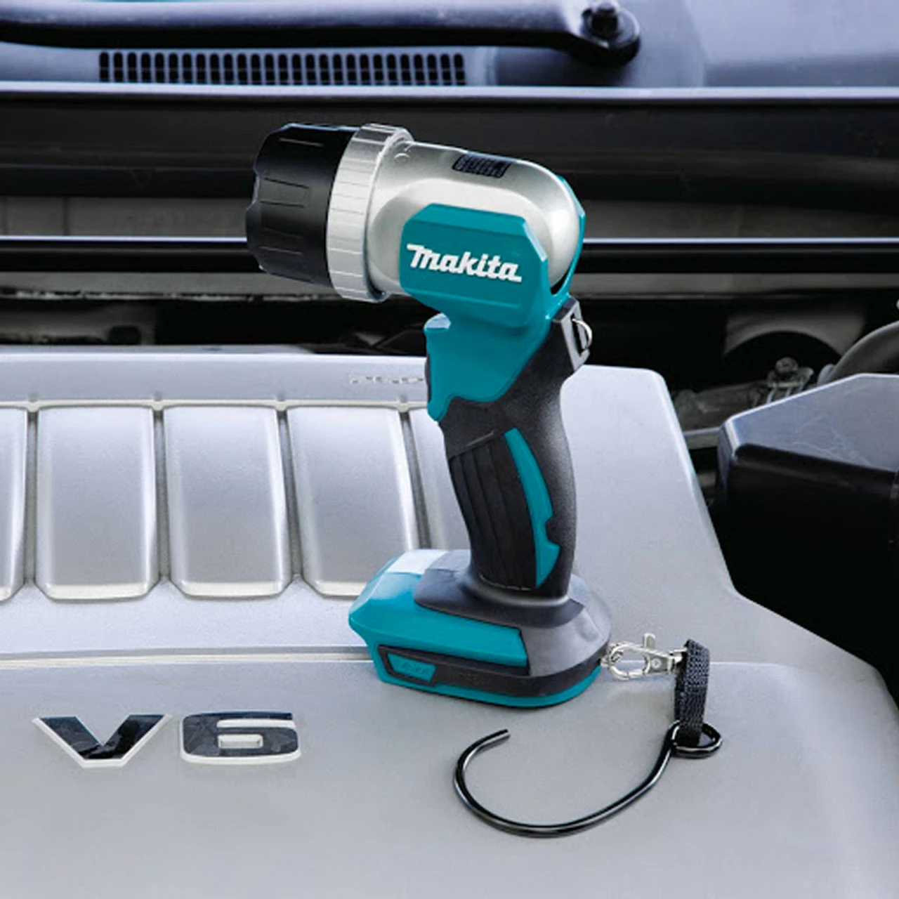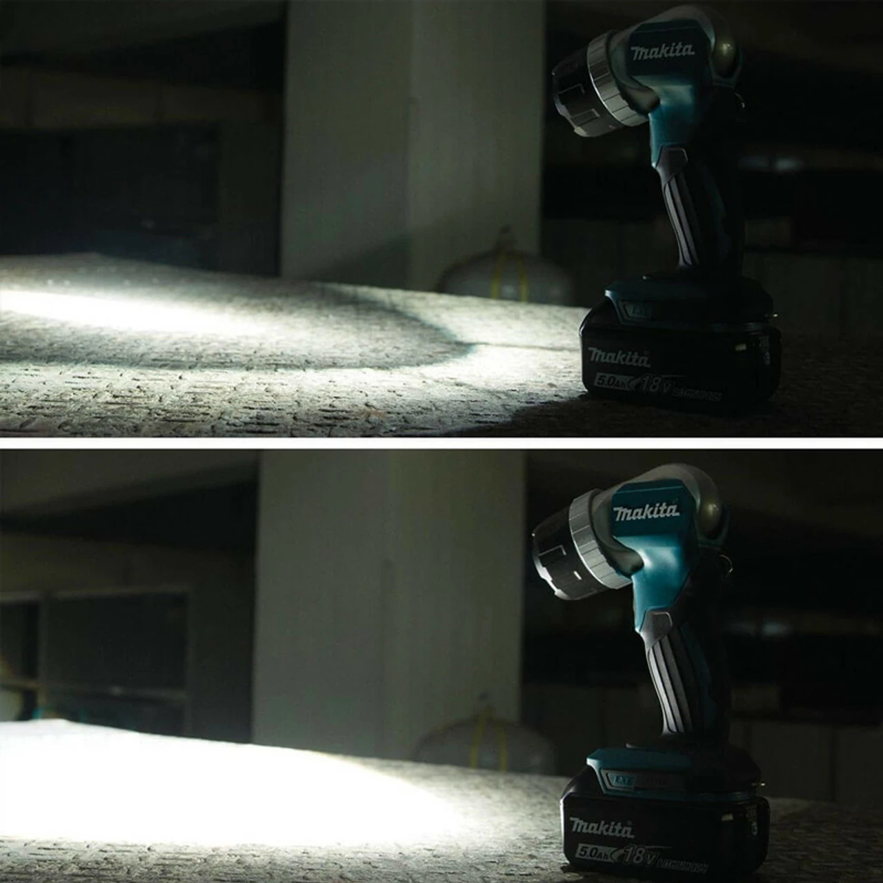 The Makita 18v LXT Li-ion Cordless LED Torch provides bright illumination, versatility & convenience. DML808 delivers a full 200 lumens of light and a sharp, round spotlight. Beam adjustment from spot to flood by simply rotating the focusing ring. Multi-faceted reflector controls the direction and spread of the light, 12 position pivoting head with positive stops from 60º-110º lets you direct the light where you need it most. Also features an aluminium head design for increased durability and a metal hang hook for job site convenience. Compact, ergonomic & lightweight 1.1kg design with rubberised soft grip provides increased comfort on the job. When used with a fast-charging 18V LXT® Lithium-Ion 5.0Ah battery, the torch delivers up to 23h of continuous illumination on a single charge.