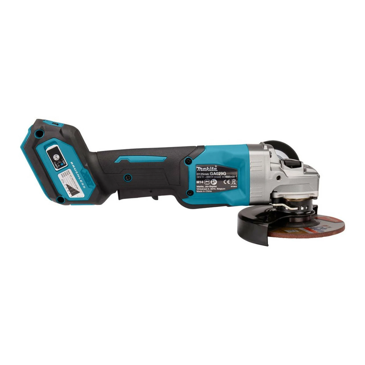 Makita GA029GD201 40V Max XGT Brushless 125mm Paddle-Switch Angle Grinder with 2x 2.5Ah Batteries