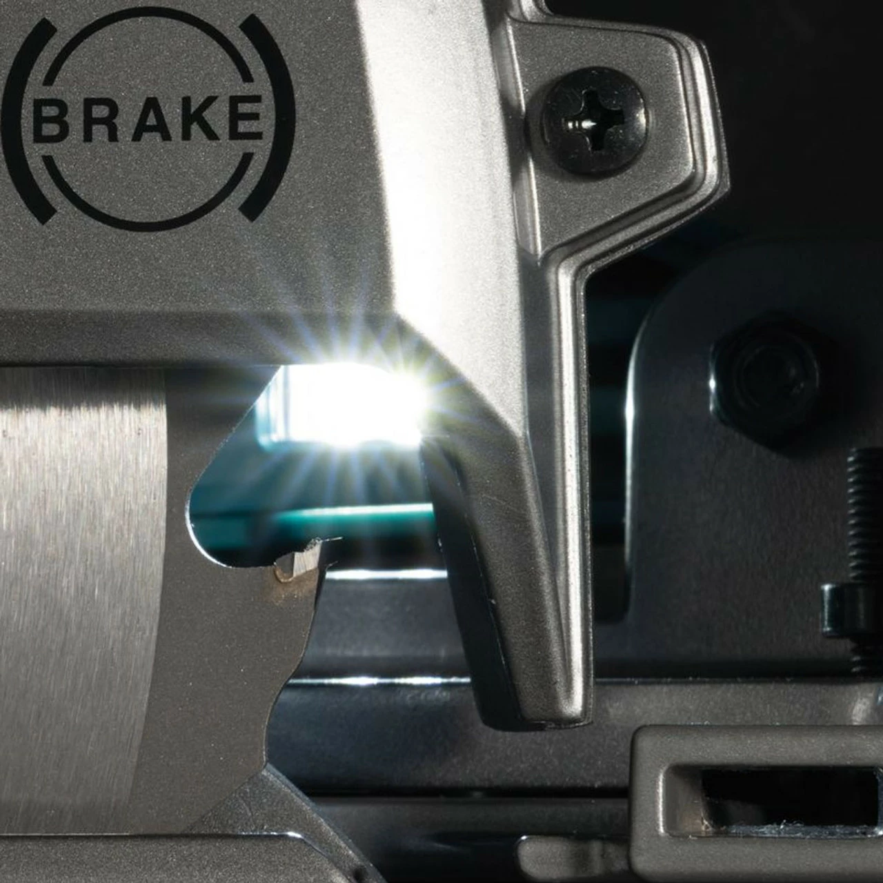 The HS009GT201 features a sturdy magnesium base that is compatible with suitable guide rails, allowing for high levels of precision. The is also capable of bevels cuts 1° left to 60° right with positive stops at commonly used angles 22.5° and 45°. Other useful features include, an electric brake, a soft-start for smooth operation and anti-restart that prevents accidental operation on battery change.
