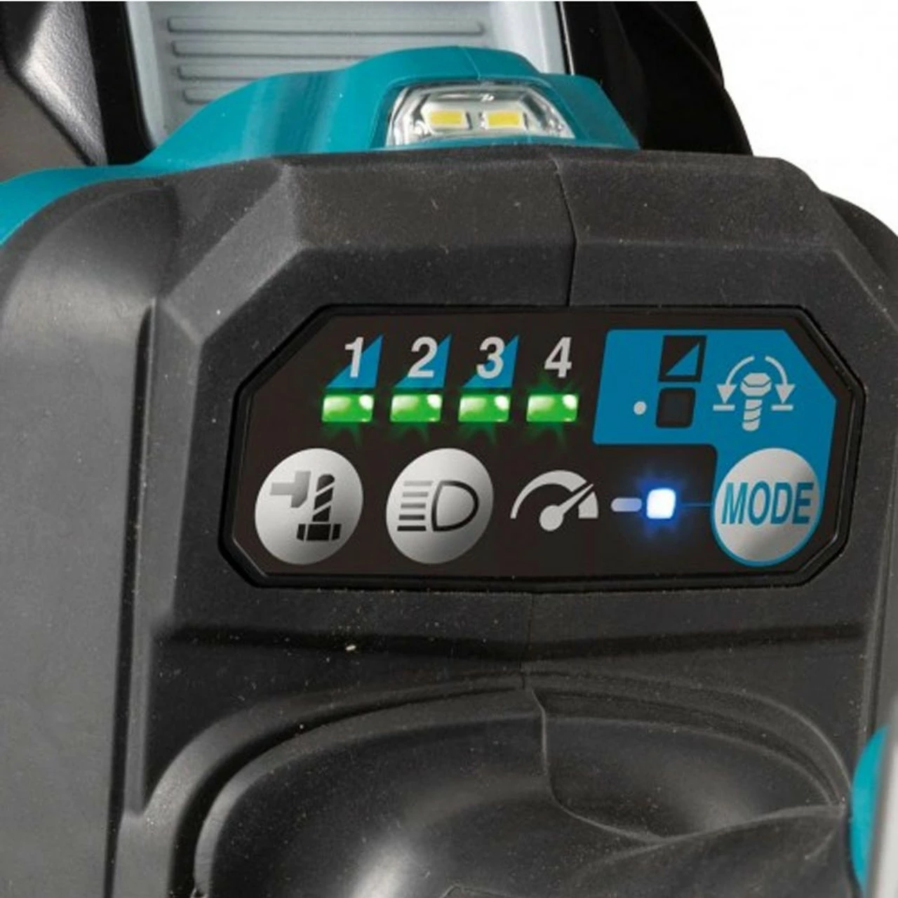The Makita TW001 40v Max XGT Brushless Impact Wrench is a fairly compact, lightweight 3/4″ Square Impact Wrench that is packed with plenty punch! Boasting an extra high max tightening torque of 1,800Nm. With an electric brake and variable speed trigger, it offers a high level of control as well as an auto-stop system available in both forward/reverse rotation modes. An LED job light means great visibility even in low light conditions, and the 4 stage impact power selections gives you the versatility to use this tool for a range of different applications. The variable speed mode can be changed to full speed mode simply by pushing a button. Because in full speed mode the trigger travel is shorter, the full speed is reached faster.