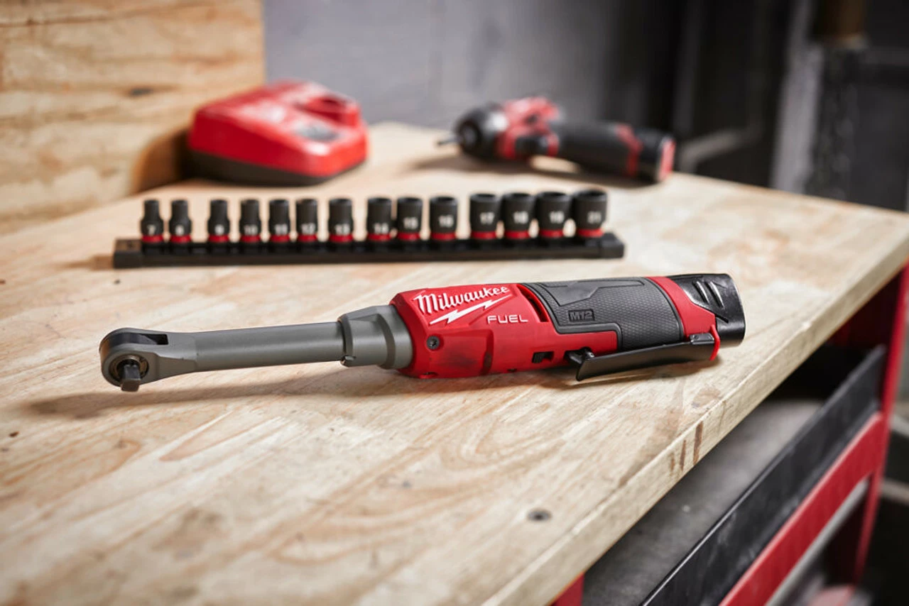 The outstanding M12 FUEL Milwaukee Ratchet has a variable speed metal trigger for maximum control, a premium rubber overmold that resists corrosion and increases comfort while in use, a brilliant LED work light that illuminates the work area, and an on-board fuel gauge that shows remaining power. Professional tradesmen benefit from greater durability thanks to Milwaukee’s industry-leading FUEL technology, which is combined with a reinforced mechanism and an investment cast steel yoke housing. Additionally, a REDLINK PLUS intelligence system provides advanced digital overload protection for the tool and battery and specifically improves the tool performance under load. Redlithium battery packs (not included) offer better pack design, electronics, and fade-free performance, giving longer runtime and more work during the battery’s lifespan.
