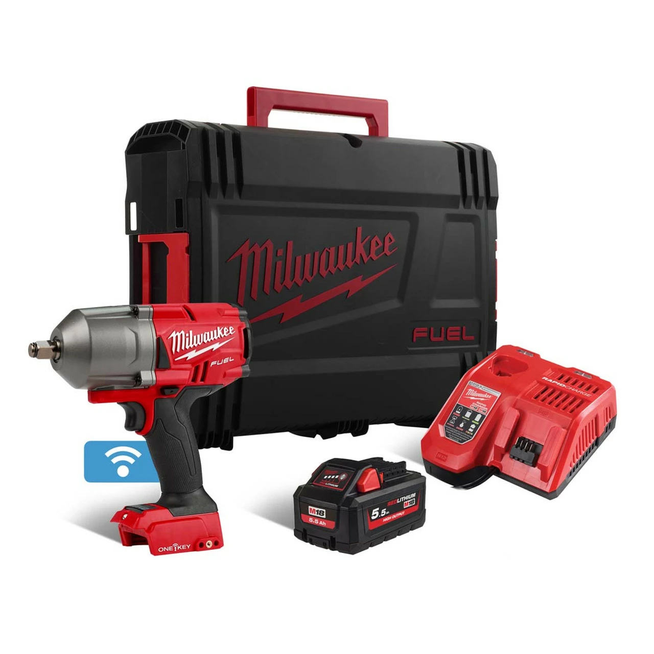 Milwaukee M18 ONEFHIWF12-551X 18V Fuel ONE-KEY Brushless 1/2″ Impact Wrench with Friction Ring Kit & 1x 5.5Ah Battery