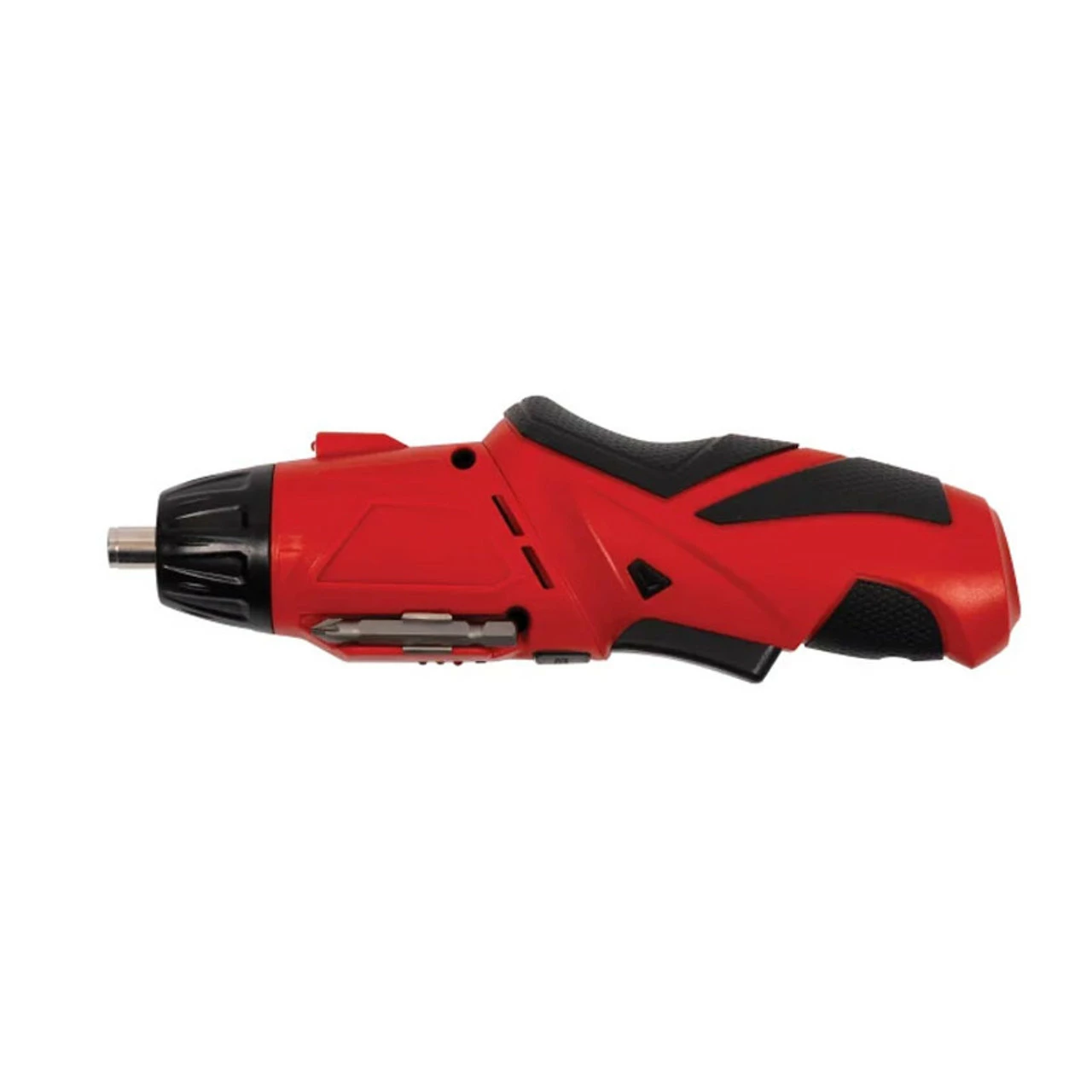 Olympia Tools® Cordless Screwdriver with an easy-to-use pivot handle that changes from a traditional pistol grip handle to a straight handle for use in confined spaces. An automatic spindle lock makes it easy to switch between bits. Fitted with a comfortable soft grip handle and an LED job light. There is also a handy charge level indicator for easier work management.