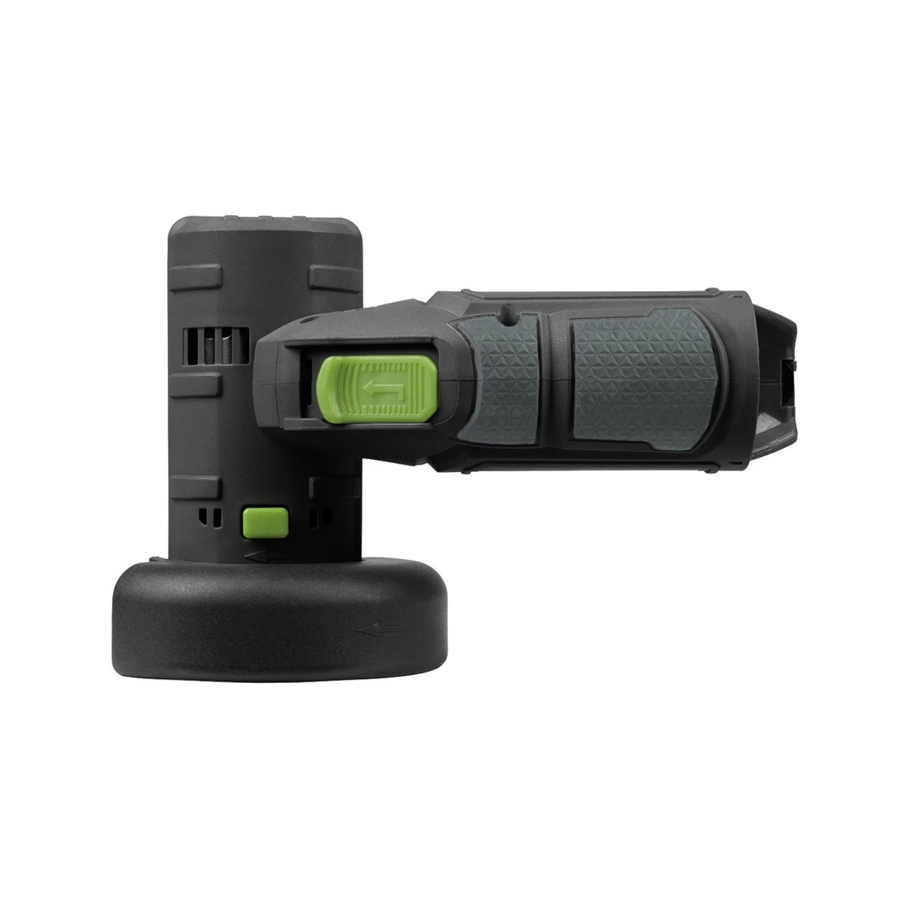 Compact, lightweight cordless angle grinder – body only. Comfortable housing with soft grip to help reduce vibration. Variable speed with six settings. Blade guard that can be adjusted and spindle locking button. LED Battery light indicator. Supplied with 1 x hex key for easy blade switching. Grinding/cutting blade not included. Requires compatible 10.8V 2Ah or 4Ah battery and mains charger, sold separately.