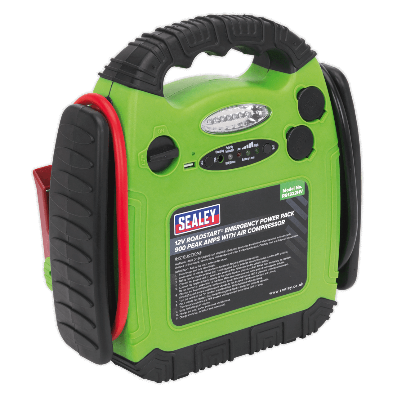 - 1 x Sealey RS1322HV RoadStart® Emergency Jump Starter with Air Compressor 12V 900 Peak Amps