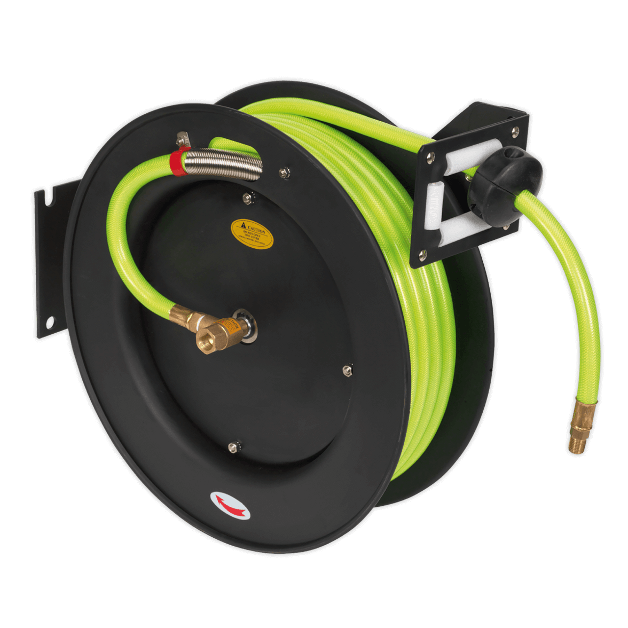 - 1 x Sealey SA841HV Retractable Air Hose Metal Reel 15m Ø10mm ID High Visibility TPR Hose