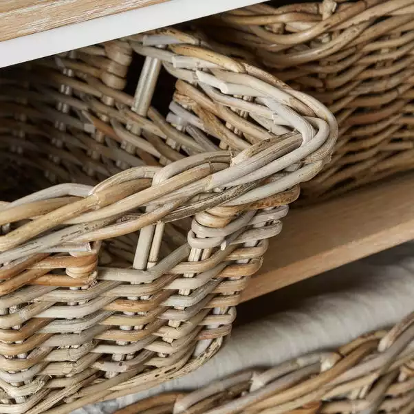 Crafted from 100% rattan, this handmade set of 4 Churchgate baskets are a perfectly stylish and rustic addition to your home. With three different sized baskets, these baskets are ideal for storing small or large items in any room of your home and they also feature cut out carry handles for easy transportation.