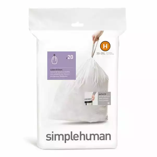 Supplied in a pack of 20 and crafted from extremely durable plastic, these white 30-litre simplehuman bin liners include plastic ties for easy bag removal and disposal.