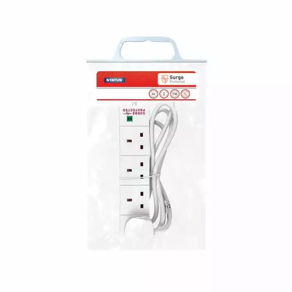 Instantly get extra power sockets in your home with this reliable white Status two metre extension lead, which provides four handy sockets. Convenient for areas of your home with lots of electronics but few sockets, this lead also comes with surge protection to protect your equipment from damage.