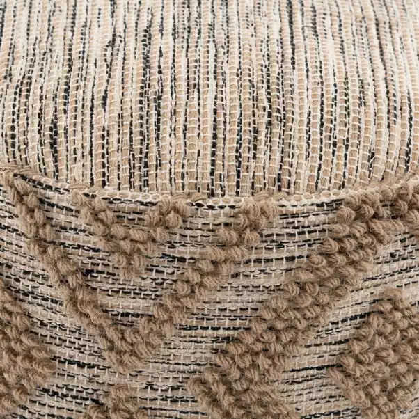 We have the perfect seating for when you want to relax, or for when your friends come round. Made from recycled cotton and jute, this stunning pouffe in a natural colourway complements an array of decors. The looped diamond detailing on its side contrasts beautifully with the multi-tonal, soft cotton. Its many uses and stylish looks make it a welcome addition to any living space.