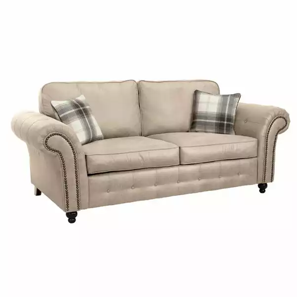 The Oakland Faux Leather 3 Seater Sofa gives an elegant and luxurious feel to any living space. This beautifully soft to feel sofa, features a stylish brass stud and button detailing along with sturdy wooden feet.
